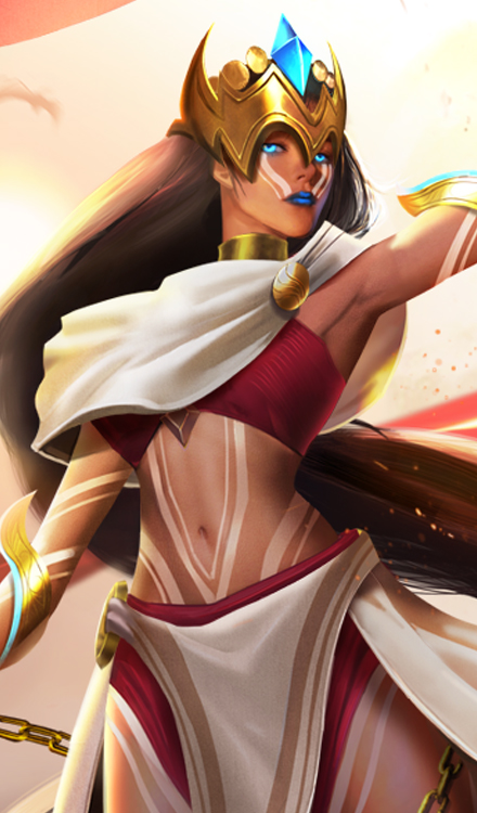 Zenobia wrapped herself in chains, temporarily immune to damage from basic Attacks. 1.2 seconds later, the chain explodes, dealing 500/700/900/1100/1300/1500(+70% Attack Power) damage to nearby enemies and increasing 47.5%/50%/52.5%/55%/57.5%/60% Attack speed for 2.5 seconds.